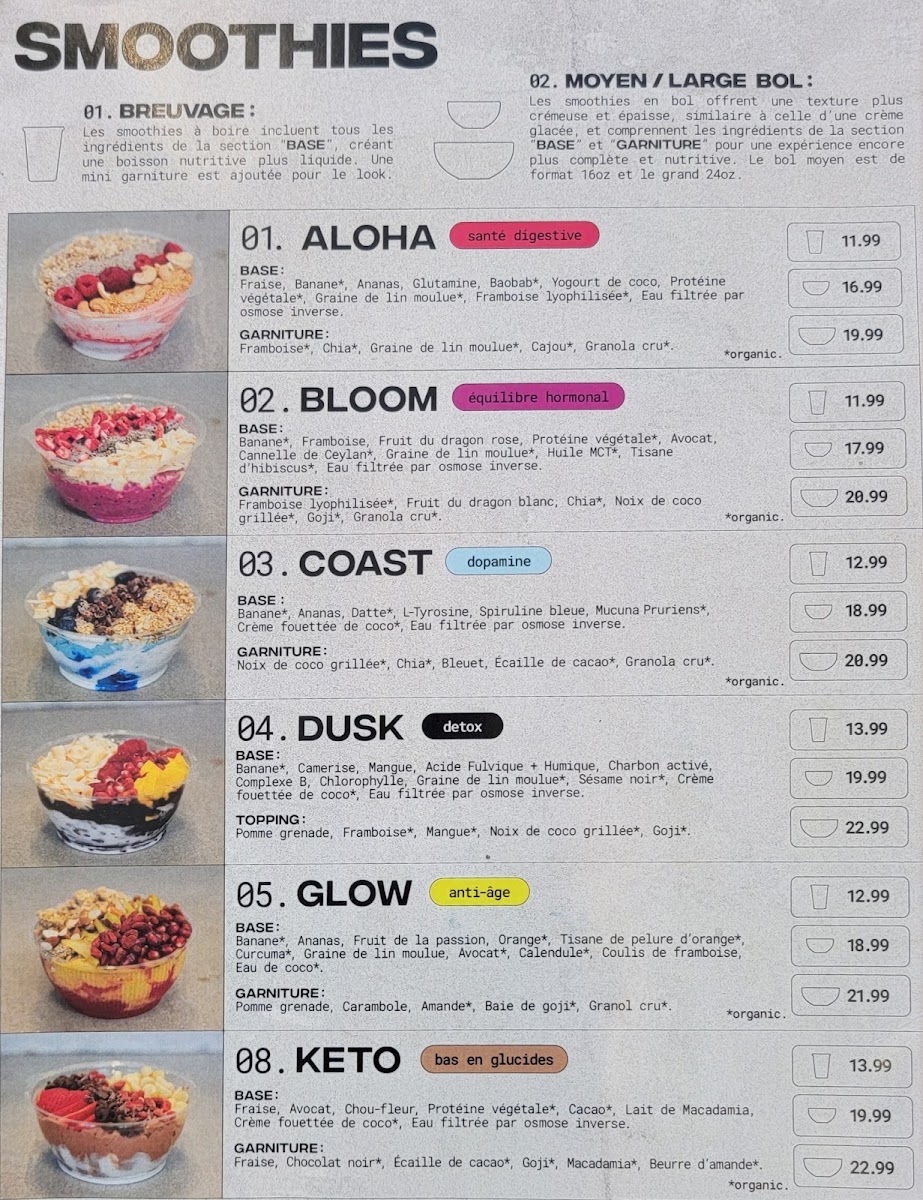 At Shaka Club, you’ll discover an enticing range of smoothies, each crafted to not only tantalize your taste buds but also cater to your health needs. Dive into the delicious Aloha À Boire, designed to support digestive health, or treat yourself to the Coast À Boire, a delightful blend that boosts dopamine levels, promising an uplifting start to your day. For those seeking anti-aging benefits, the Glow À Boire is a must-try, while the Maui À Boire is perfect for post-workout muscle recovery.